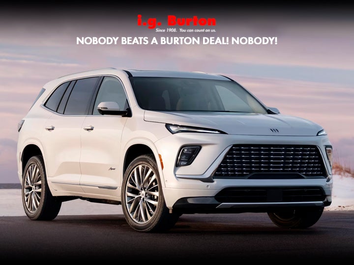 1. Final discount includes the i.g. Burton Discount that ALL customers qualify for. Prices INCLUDE freight and delivery charges. Tax, title, license, and dealer processing fees extra. Must finance with GM Financial. Not available with lease and some other offers. Offer applies to stock number G26-1048 while supplies last. Not all customers will qualify for all available offers. Residential restrictions apply. Must take new retail delivery by 03/02/2026. 2. Deferred monthly payments for 120 days. Finance charges accrue from date of financing. Must finance with GM Financial. Down payment required at signing, if applicable. Offer not available in PA. Some customers may not qualify. Not available with lease and some other offers. 0.9% APR for 36 months for well-qualified buyers when financed w/GM Financial. Monthly payment is $28.16 for every $1000 you finance. Average example down payment is 10.0%. Not available with leases and some other offers. Must take new retail delivery by 03/02/2026.